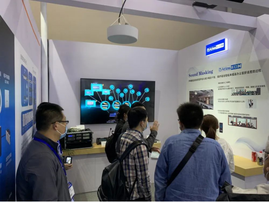 AtlasIED作為美國(guó)的老牌音響品牌,在國(guó)內(nèi)市場(chǎng)應(yīng)用多年,也得到了市場(chǎng)的接受和認(rèn)可。本次,Atlas除了展示旗下全線的揚(yáng)聲器和音頻處理系統(tǒng)外,還展示了吸引人眼球的“聲音掩蔽系統(tǒng)”、“Atomosphere"背景音樂(lè)系統(tǒng)和“Global 網(wǎng)絡(luò)化公共廣播系統(tǒng)”。三個(gè)系列產(chǎn)品因?yàn)楣δ艿奶厥庑?,吸引了現(xiàn)場(chǎng)不少人的眼球,現(xiàn)場(chǎng)觀眾聽(tīng)完講解后,紛紛與現(xiàn)場(chǎng)的技術(shù)人員進(jìn)行交流,并預(yù)約了展會(huì)結(jié)束后環(huán)境演示與交流。