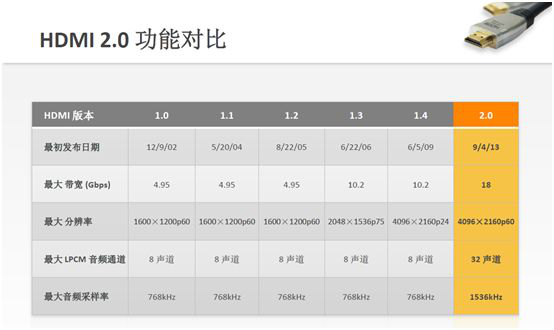 簡(jiǎn)而言之,HDMI2.0目前已經(jīng)徹底完成了規(guī)范制定,無(wú)論是2013年的HDMI2.0,還是2015年的HDMI2.0b,對(duì)用戶而言沒(méi)什么區(qū)別,我們也可以將他們統(tǒng)稱為HDMI2.0。