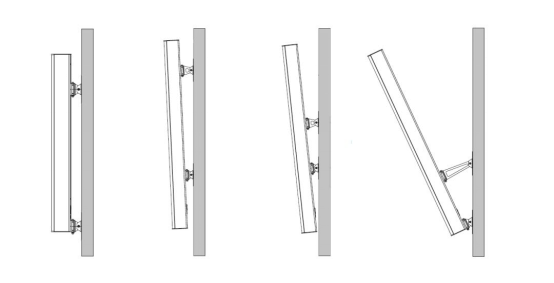 ALA自帶3個(gè)不同長(zhǎng)度的壁裝支架,可以從垂直到36度傾斜方式安裝。
