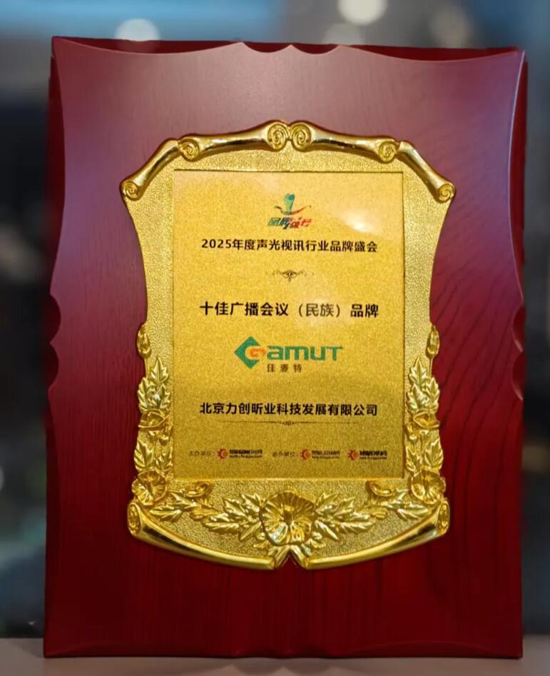 在同期舉辦的品牌盛典中,力創(chuàng)旗下品牌GAMUT(佳麥特) 憑借卓越的產(chǎn)品品質(zhì)與技術(shù)創(chuàng)新能力,榮獲 “十佳廣播會(huì)議(民族)品牌” 大獎(jiǎng)。